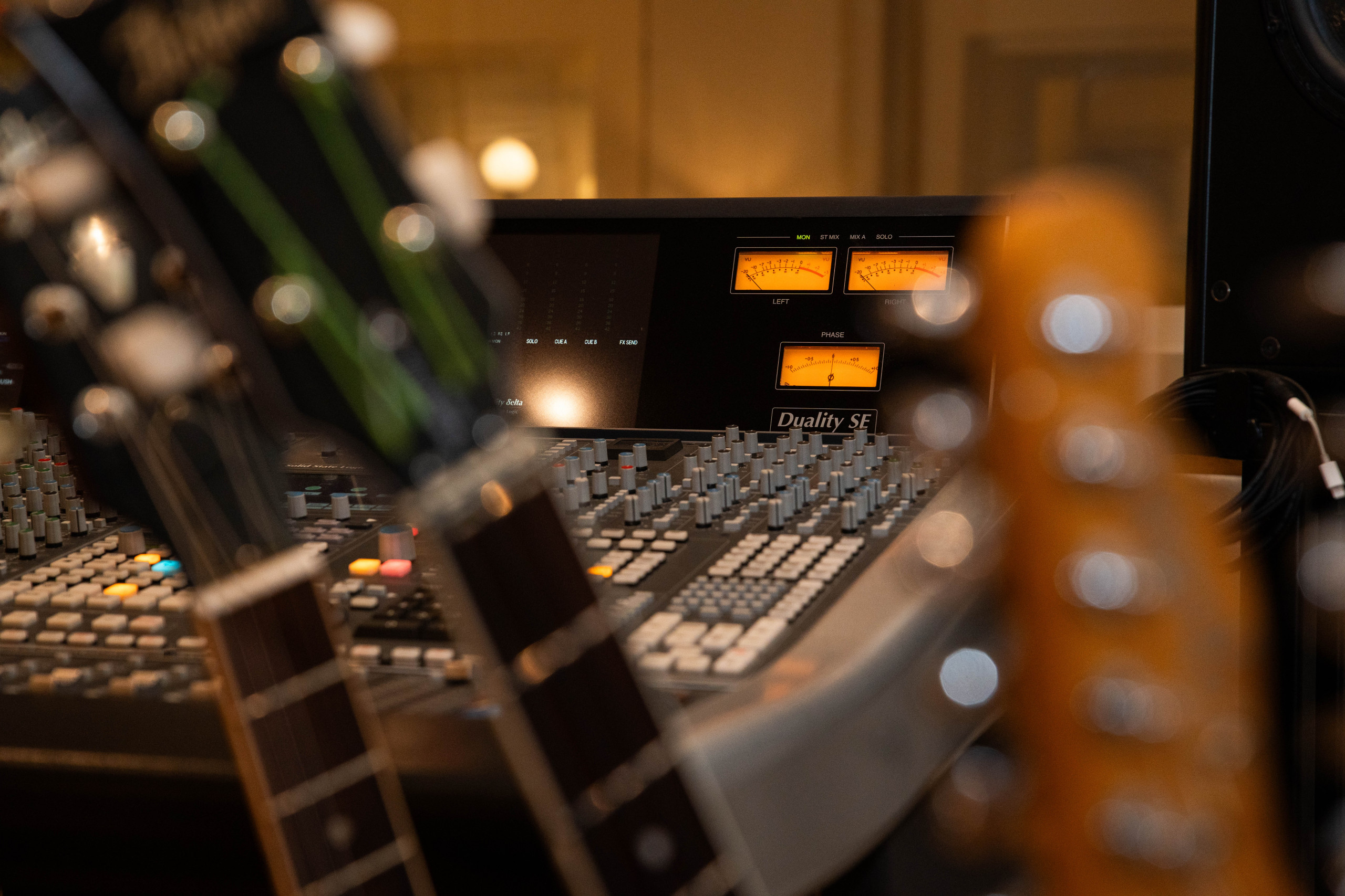 Extensive selection of drums, basses, guitars, keyboards, synthesisers and amps including Moog One, Sequential Prophet Rev-2, Leslie Cabinet, Marshall, Orange, Hammond. Enquire for details.